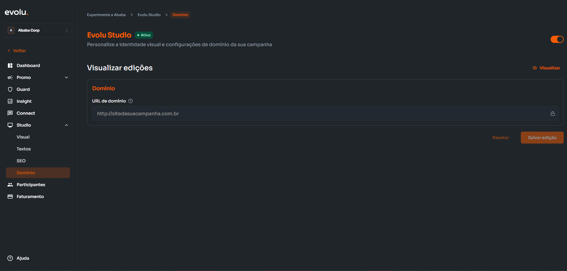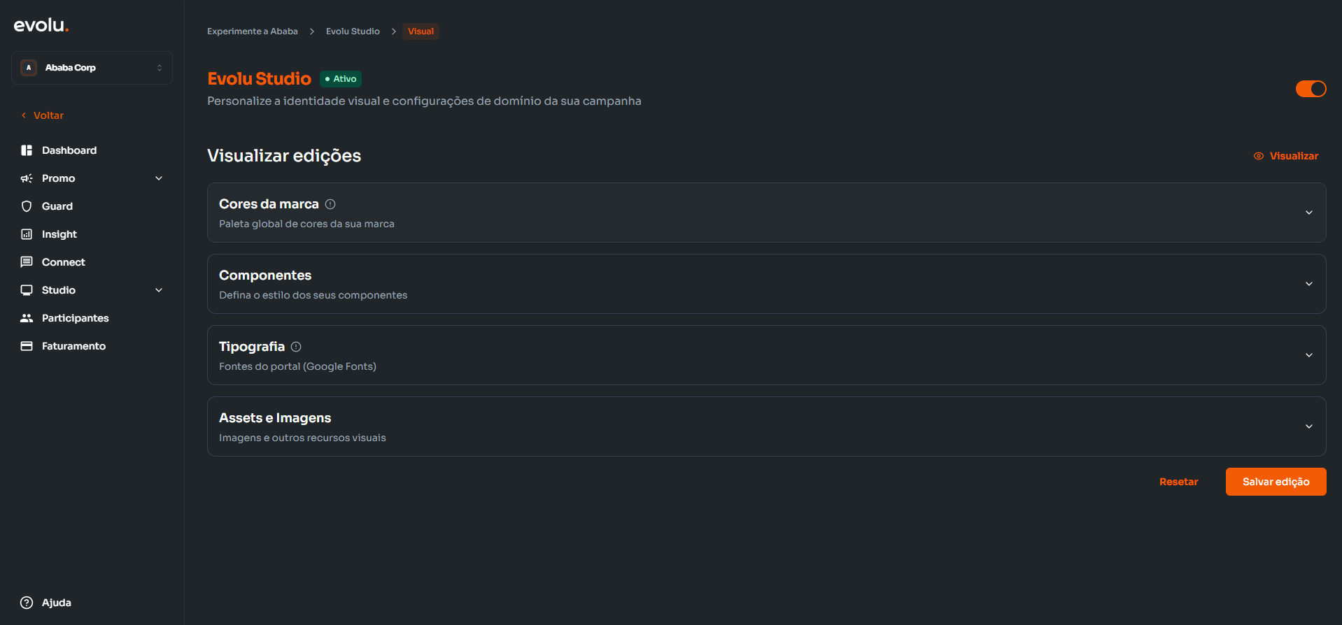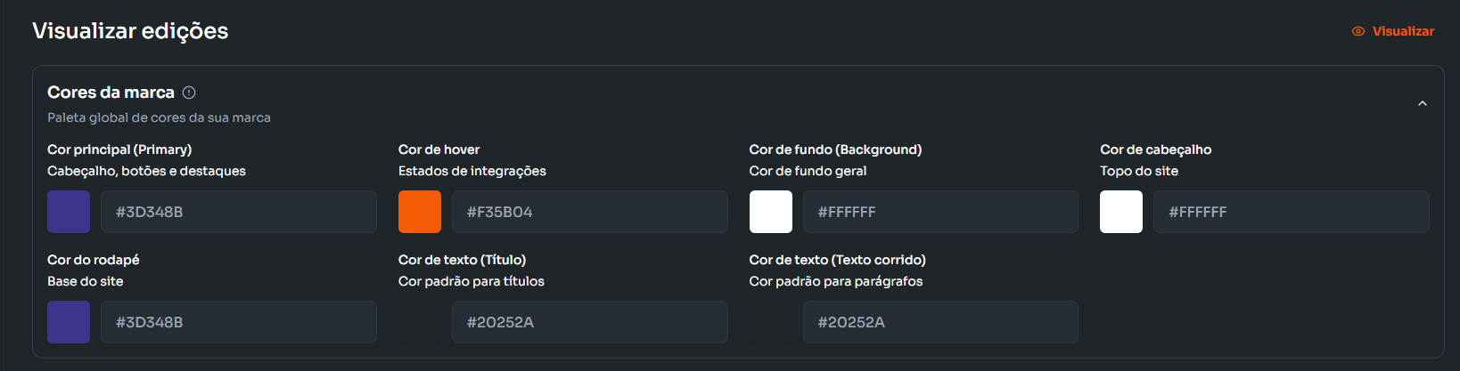 É permissível ver como está o desenvolvimento do whitelabel a qualquer momento depois de salvar a edição através do botão "Salvar edição" e clicar em "Visualizar"