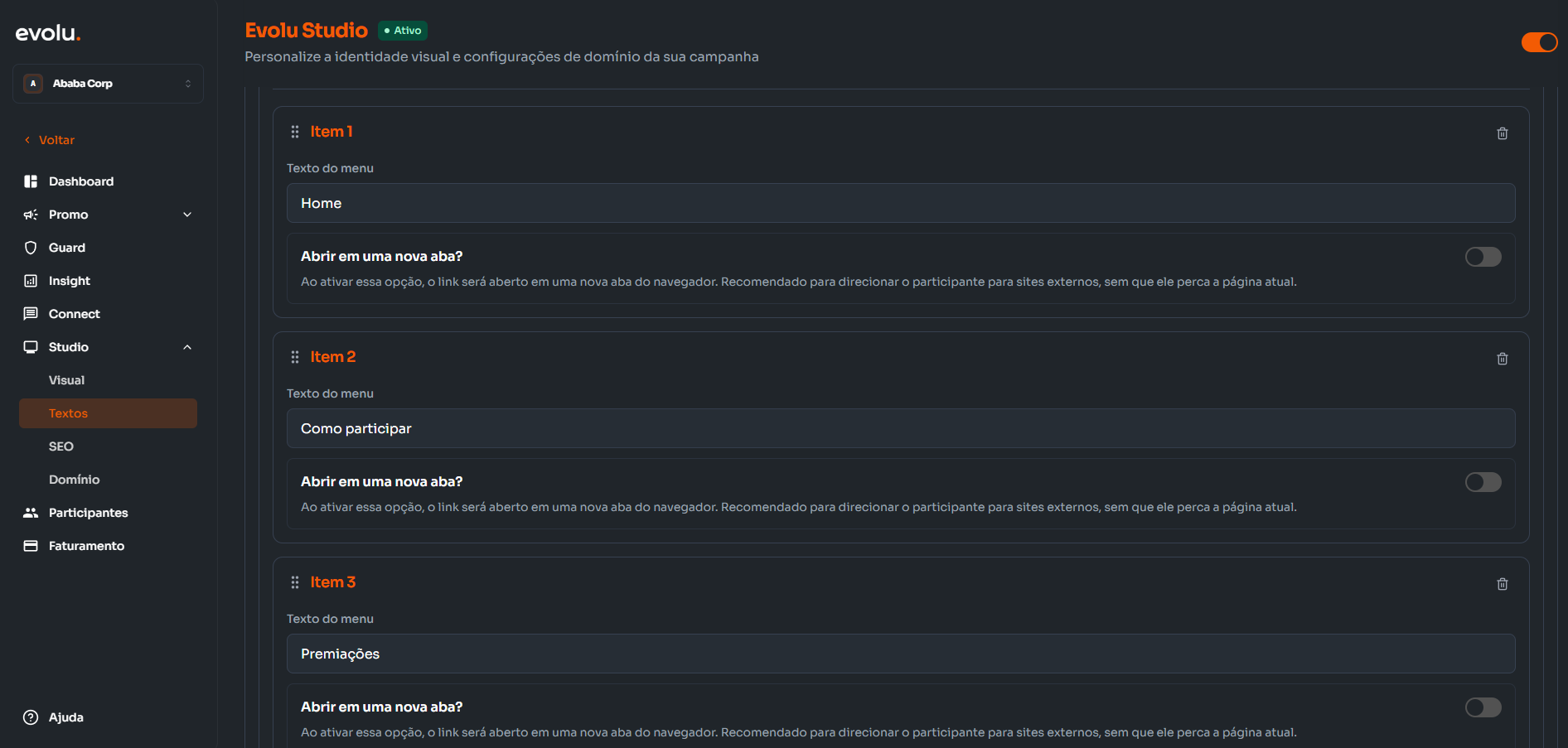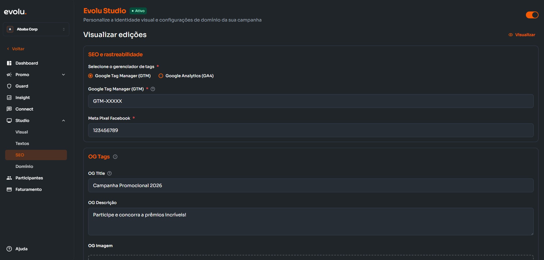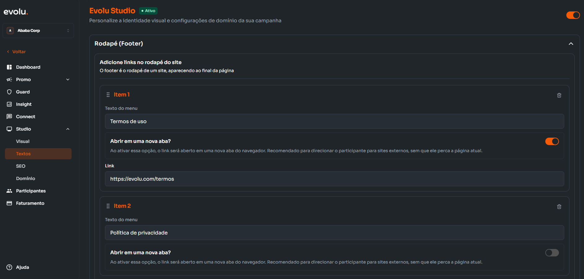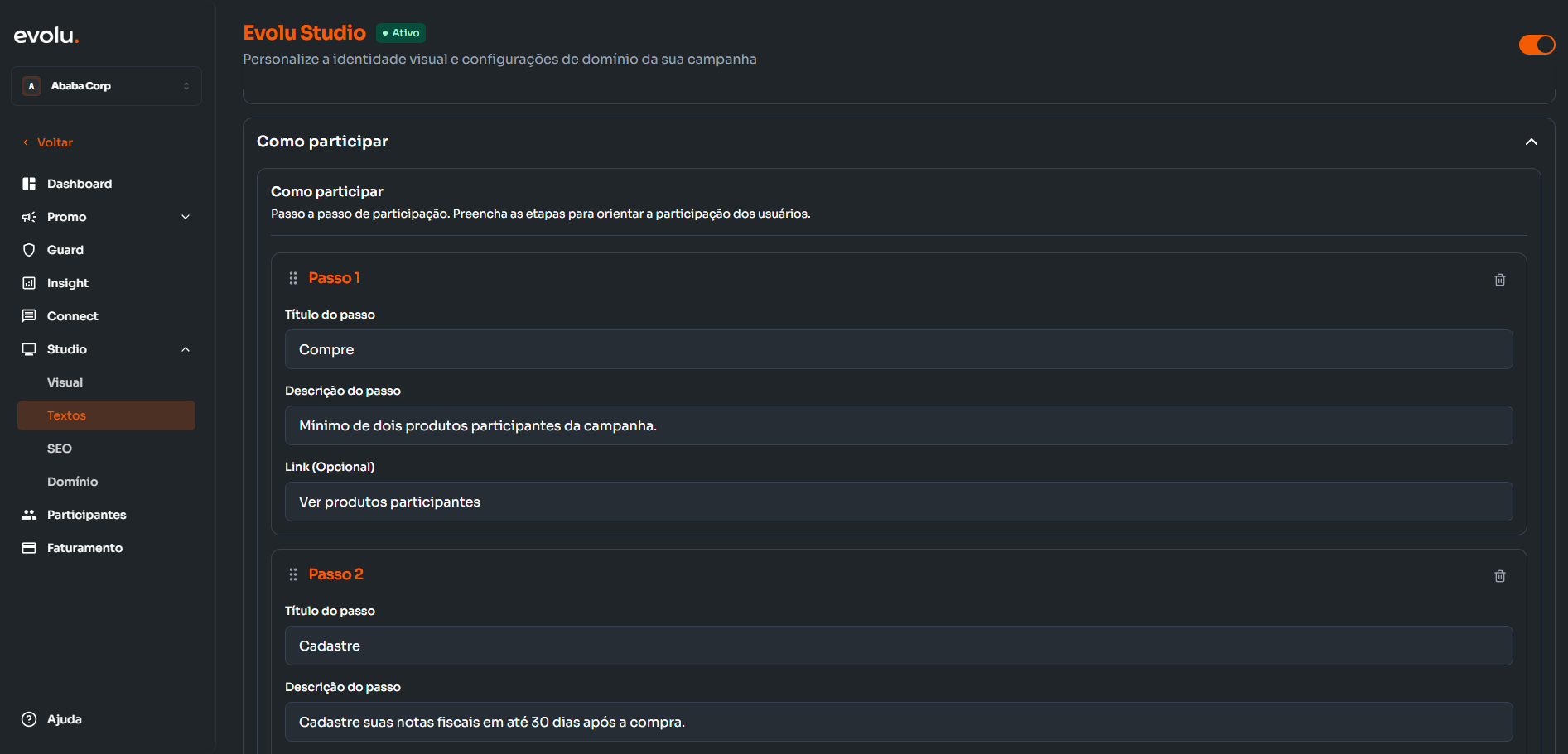 Neste artigo você encontrará informações sobre a configuração do site da sua campanha promocional, por ele ser personalizável é possível alterar textos, SEO e visual para que ele se adeque cada vez mais a sua marca.